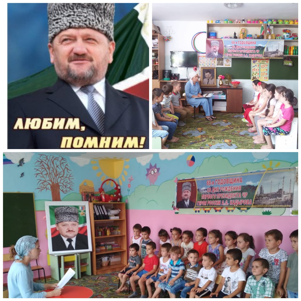 21.08.201921.08 2019г. На кануне 68-ой годовшины со рождения первого Президента Чеченской Республики- Героя России Ахмат-Хаджи Кадырова (Дал г1азот къобала дойла цуьнан) в "Детском саду им. А. Кадырова" проведены беседы во всех группах, приуроченные к этому мероприятию.