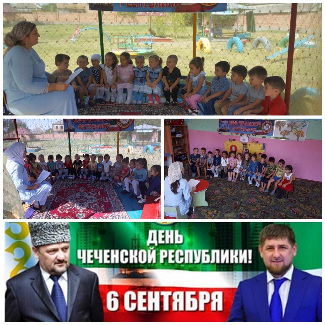 06.09.2019В соответствии с планом работы ДОУ "Детский сад им. А. Кадырова с.п. Бено-Юртовское" провели беседу во всех возрастных группах ко Дню Республики. Этому празднику уже 11 лет. 6 сентября 2012 года - День гражданского согласия и единения. Другими словами - это День Чеченской Республики.