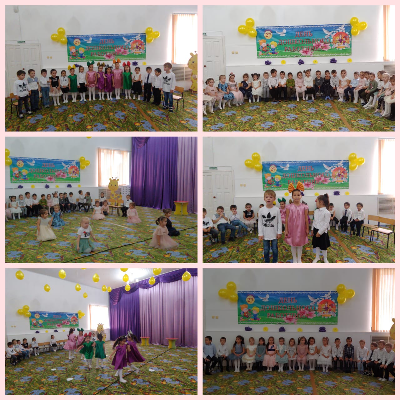 23.09.2021провели утренники в средней, старшей и подготовительной группах посвященного празднованию День дошкольного работника Цель: расширить представление у детей о работниках детского сада, создать условия для повышения активности.Ребята средней группы подготовили танец ко дню дошкольного работника. Исполнили песню: «Детский сад». Ребята со старшей группы исполнили песню:«Воспитатели наши», старшая группа исполнили танец: «Модные матрешки».