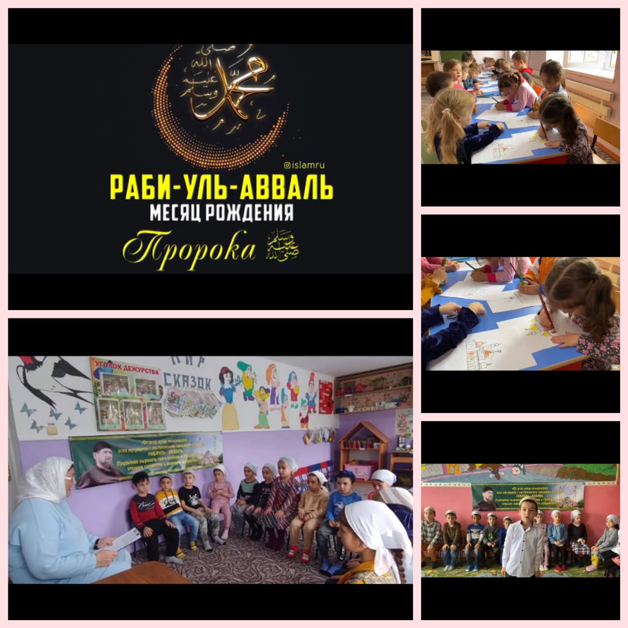Провели беседы во всех возрастных группах о наступлении и величии месяца Робби-Уль-Авваль, а так же тематические занятия в старшей и подготовительной группах.
