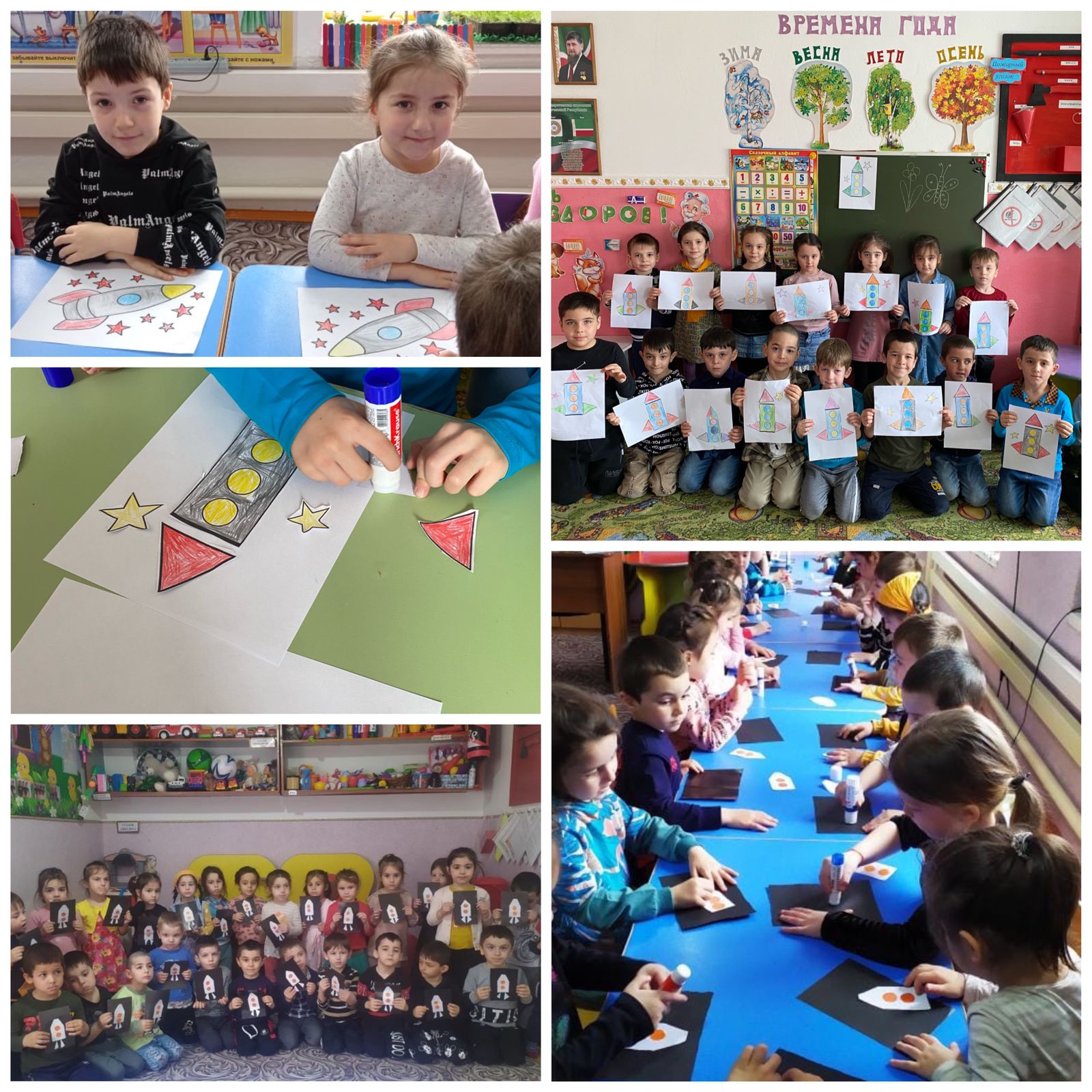 12.04.2022День космонавтики — памятная дата, отмечаемая 12 апреля, установленная вознаменование первого полёта человека в космос. В связи с этим, во всех группах 12.04.2022 года прошло тематическое мероприятие, посвящённое ДнюКосмонавтики.Дети узнали, что наша планета называется ЗЕМЛЯ, что она круглая, что мы на ней живем,познакомились с космическими телами (планетами, метеоритами, кометами), узнали, ктотакой космонавт и каким он должен быть , и одругих интересных явлениях, связанных с космическим пространством.Знания, полученные в детском саду, дети закрепили в своих творческих работах. Рисункии поделки выполнены с большой фантазией и представляли из себя яркий мир красок.