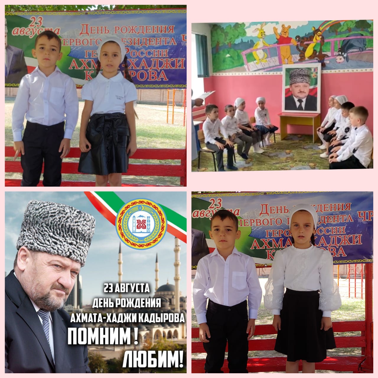 23.08.2022Сегодня, 23 августа 2022 года, выдающемуся сыну чеченского народа, известному государственному, политическому и религиозному деятелю, ПЕРВОМУ ПРЕЗИДЕНТУ ЧЕЧЕНСКОЙ РЕСПУБЛИКИ, ГЕРОЮ РОССИИ АХМАТ-ХАДЖИ КАДЫРОВУ (ДАЛА ГIАЗОТ КЪОБАЛДОЙЛА ЦУЬНАН!) исполнилось бы 71 лет. В честь этого дня в нашем детском саду провели тематические беседы. Так же дети читали стихи.