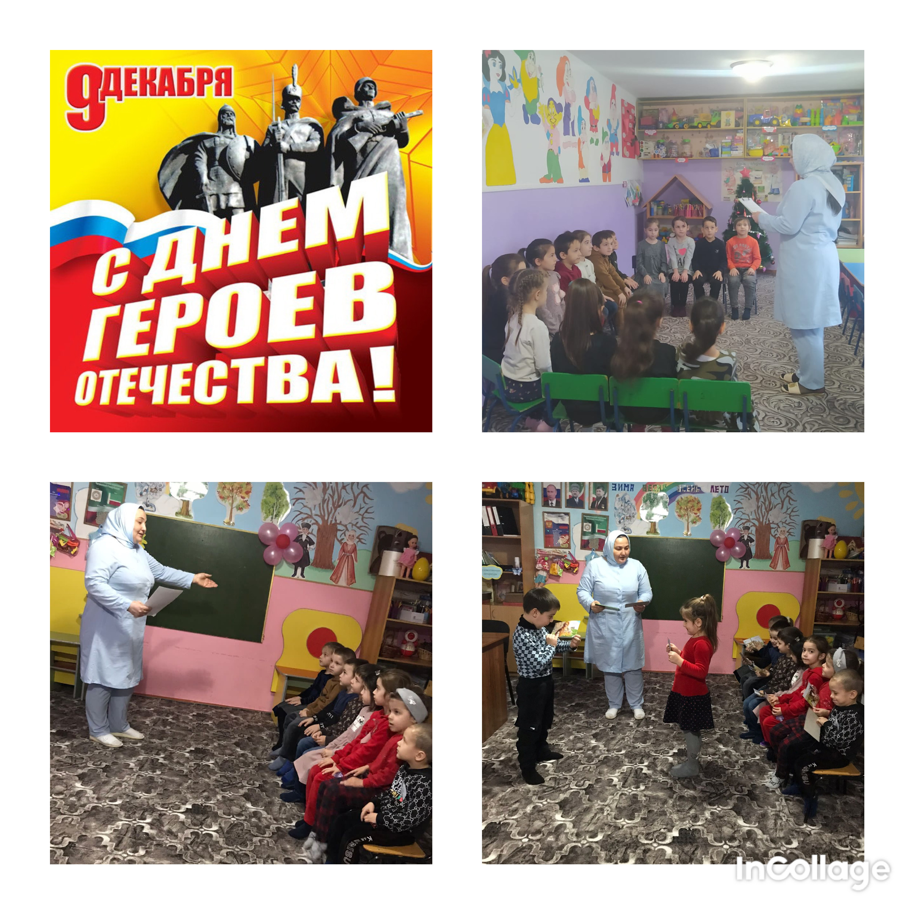 09.12.2022В детском саду были проведены беседы ко Дню Героев Отечества. Такие мероприятия с раннего детства помогают в формировании любви к Родине, ее историческому наследию и воспитывают уважение, гордость к подвигам Героев Отечества.