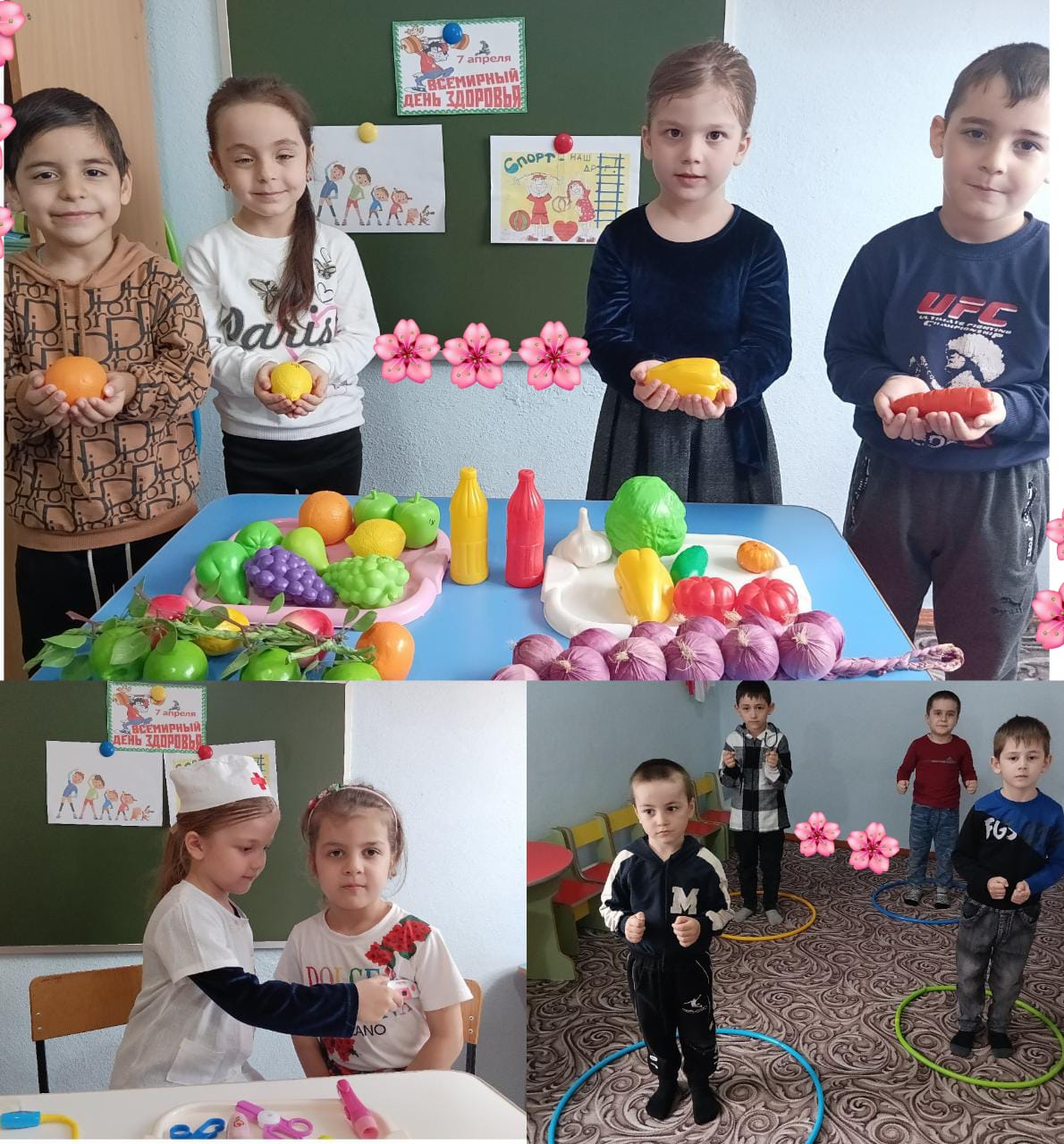 7 апреля этого года также не стал исключением: в течение дня воспитатели провели с детьми беседы о значении здоровья, здорового образа жизни, организовали интересные физкультминутки, чтение художественной литературы, рассматривание иллюстраций и картин на тему здоровья, играли в подвижные игры.