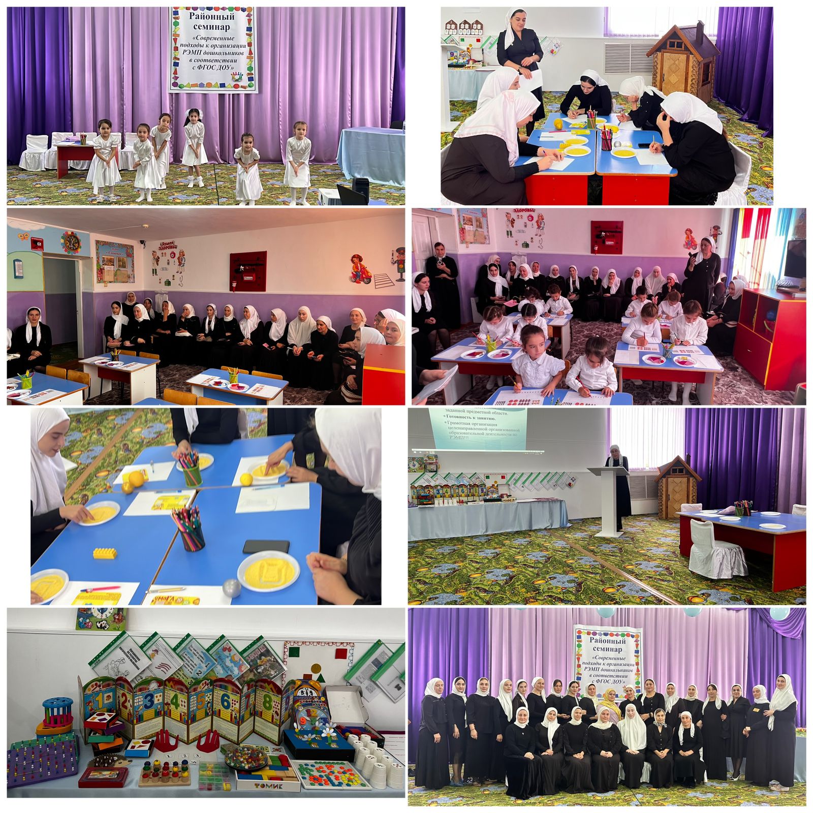С докладом из опыта работы выступила воспитатель старшей группы Исханова Луиза Моуладыновна. Воспитатель младшей группы Самаева Асет Джамаловна показала мастер-класс из опыта своей работы. Закончился семинар подведением итогов.