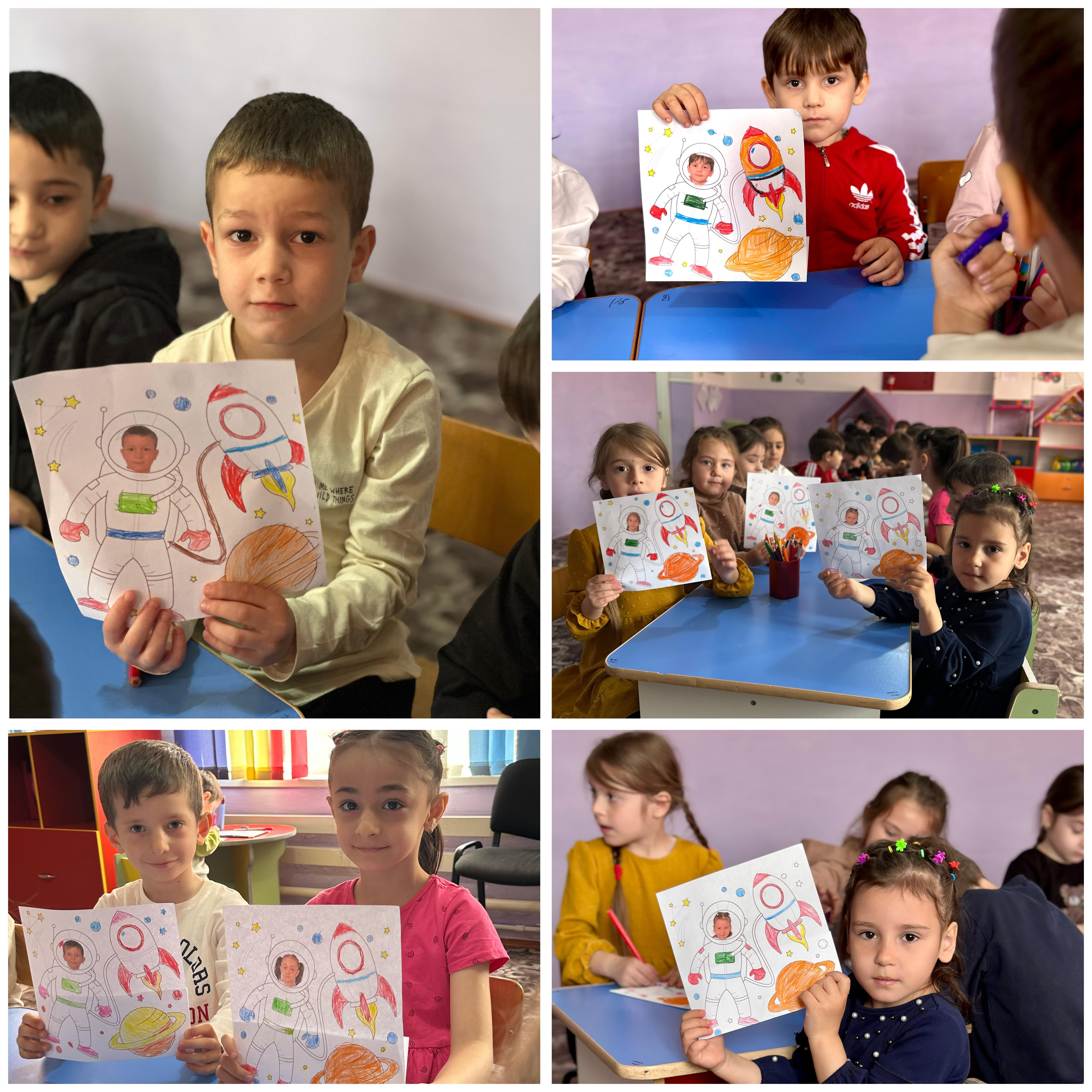 В детском саду прошла тематическая неделя, посвящённая Дню космонавтики. Воспитанники группы в течение недели знакомились с информацией о первом полете человека в космос и о космосе вообще.