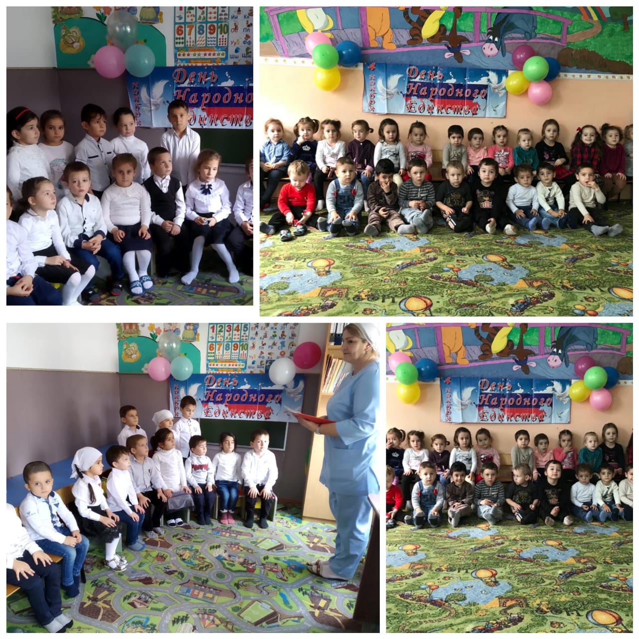 02.11.2018г. В МБДОУ "Детский сад им. А. Кадырова" во всех возрастных группах прошли беседы на "День народного единства".